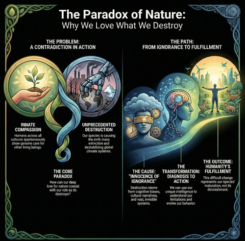 I have spent several years exploring this question, drawing on peer-reviewed research in biological conservation, evolutionary psychology, cognitive science, and environmental science. The result is a nine-part essay series called The Innocence of Ignorance.